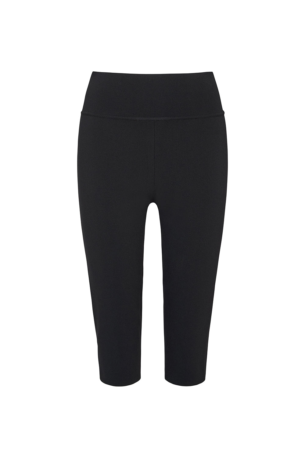 compact knitted capri pant with contour fitting rib high waist. smart knits engineered to shape.