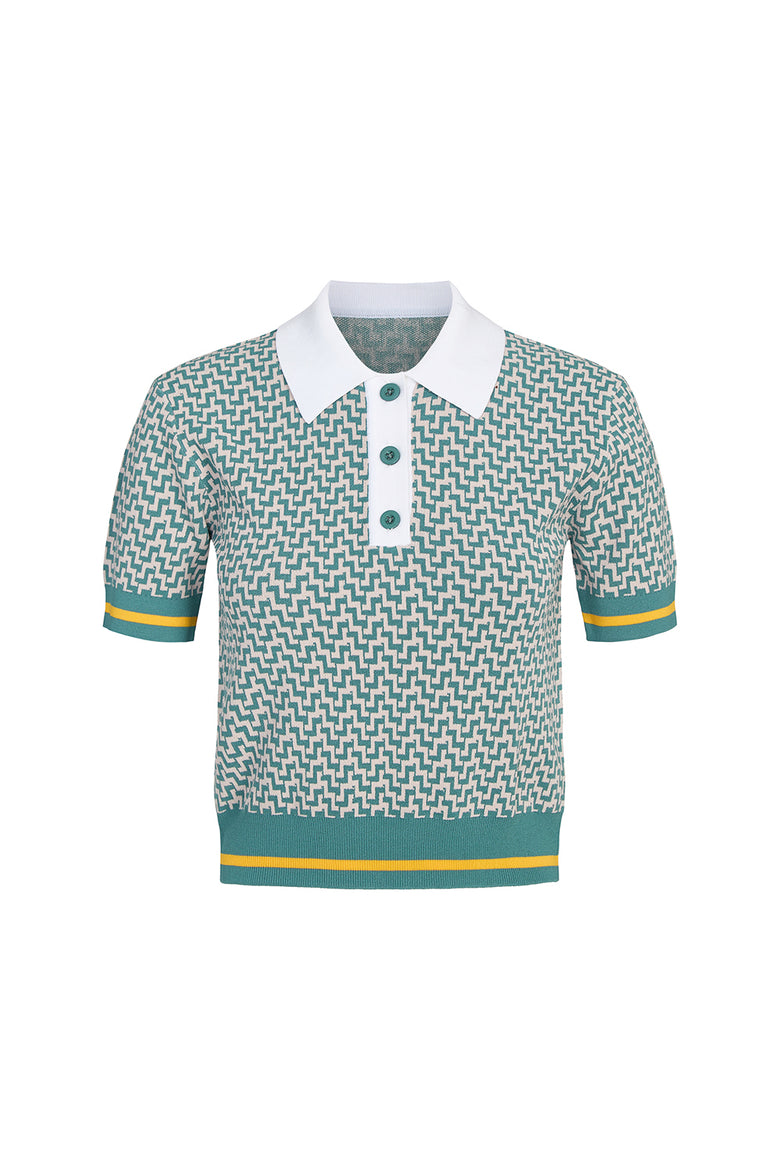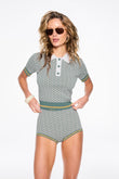 fitted short sleeve polo top in our smart knit jacquard. engineered to create zero waste. pair it with la plage short for the perfect set
