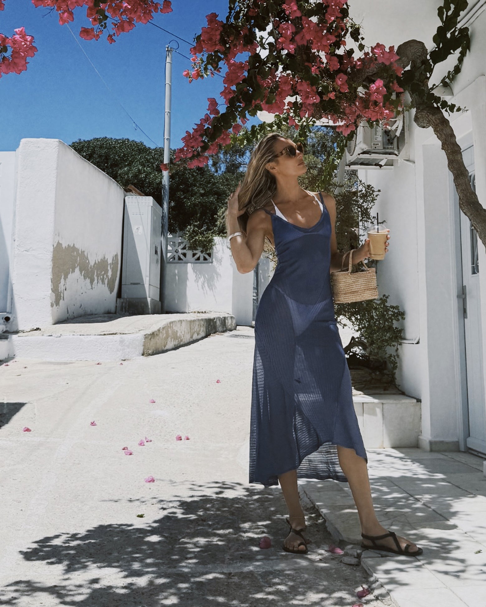 semi-sheer, strappy dress in engineered rib to fit and flare. features low scoop V neck and a flattering hemline cut shorter in the front.