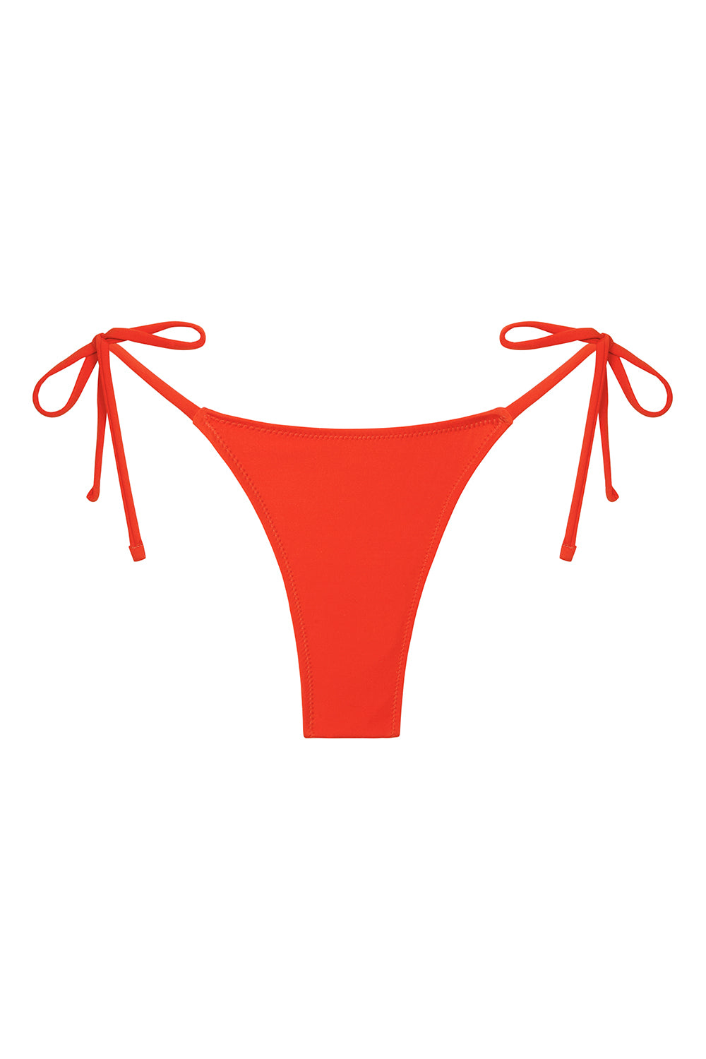 tie bottom with minimal back coverage featuring adjustable side ties for a custom fit. made in a soft compression fabric in tomato.