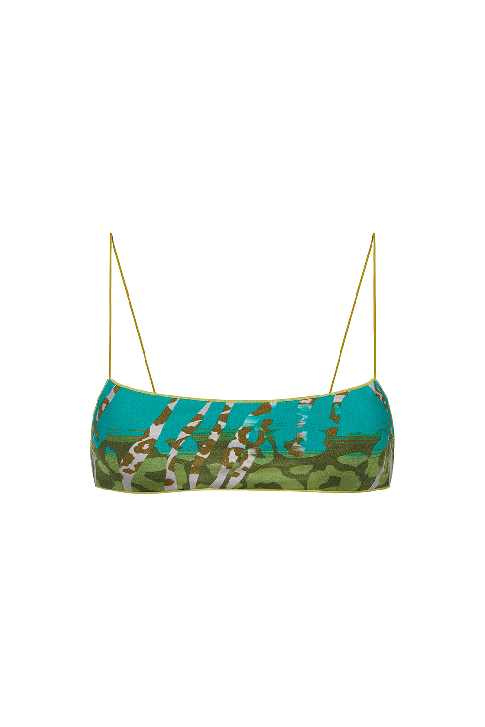 our signature the C bralette top in digitally printed large paradise pattern. designed with a low scoop neckline, skinny elastic cording straps in matching color and purl edging. hits just below the bust.