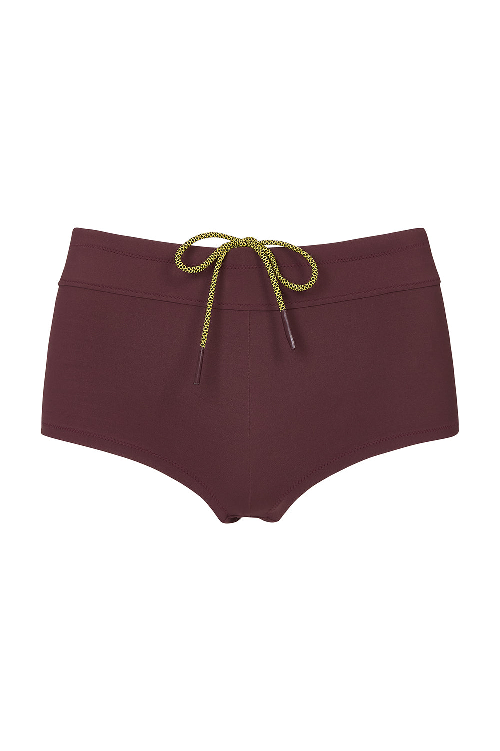 low rise surf short with full coverage, featuring a contrast drawstring cord and elasticated waistband. perfect for an active lifestyle. made in sustainable soft compression fabric in kalamata.
