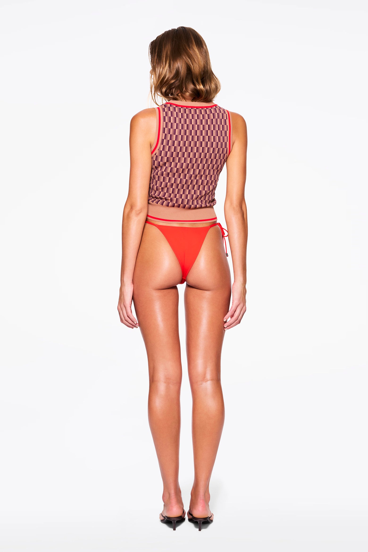 cropped vest featuring low V-neck and elasticatd waist knitted in geometrical jacquard.